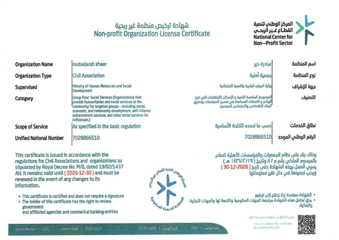 أسماء مجلس الإدارة ودوراتهاقرار تأسيس جمعية مبادرة خير